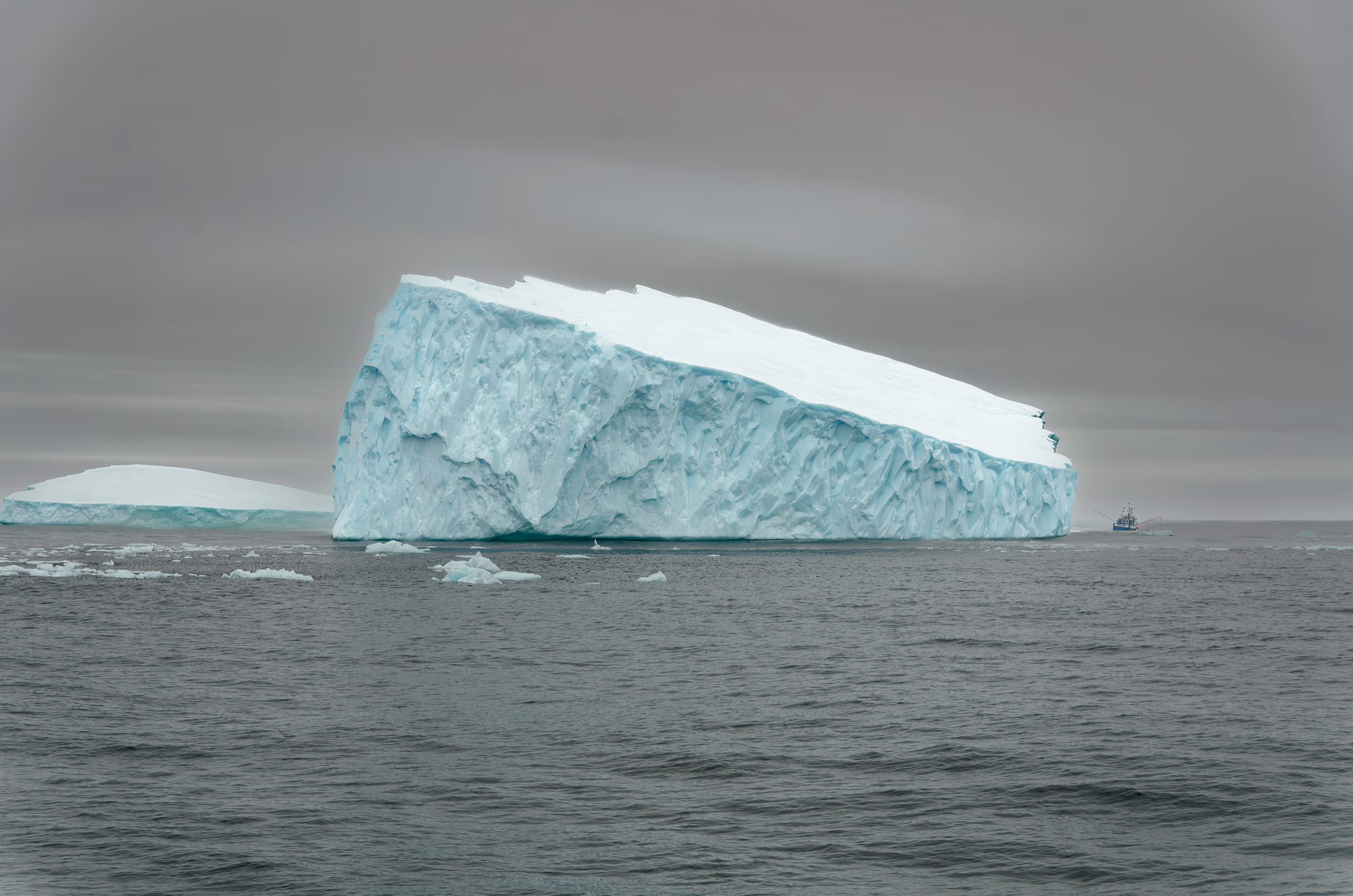 Every year, icebergs shear from the Greenland ice sheet (if it’s more than 50,000 square kilometers in area, it’s an ice sheet, not an ice cap) and float out to sea between Greenland and Baffin Island. The Labrador Current propels them south and east until they silently stalk the coast of Newfoundland. Ice harvesters mine them and sell the ice to various customers, including distillers and local bars.