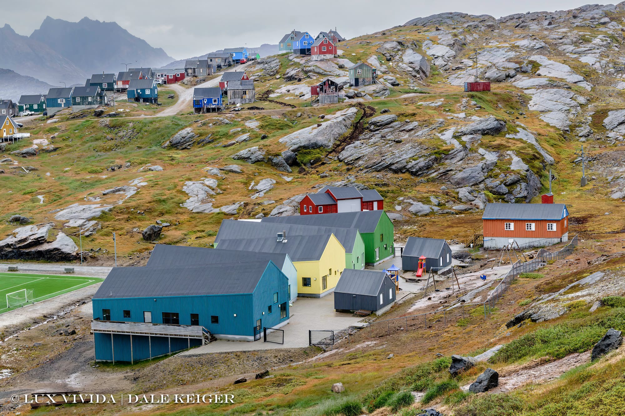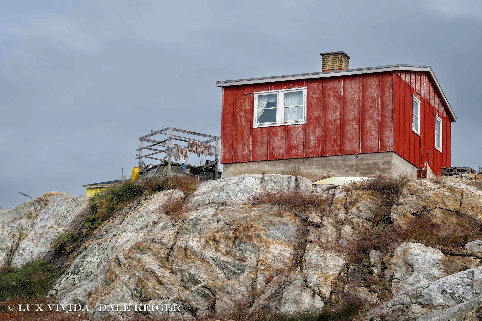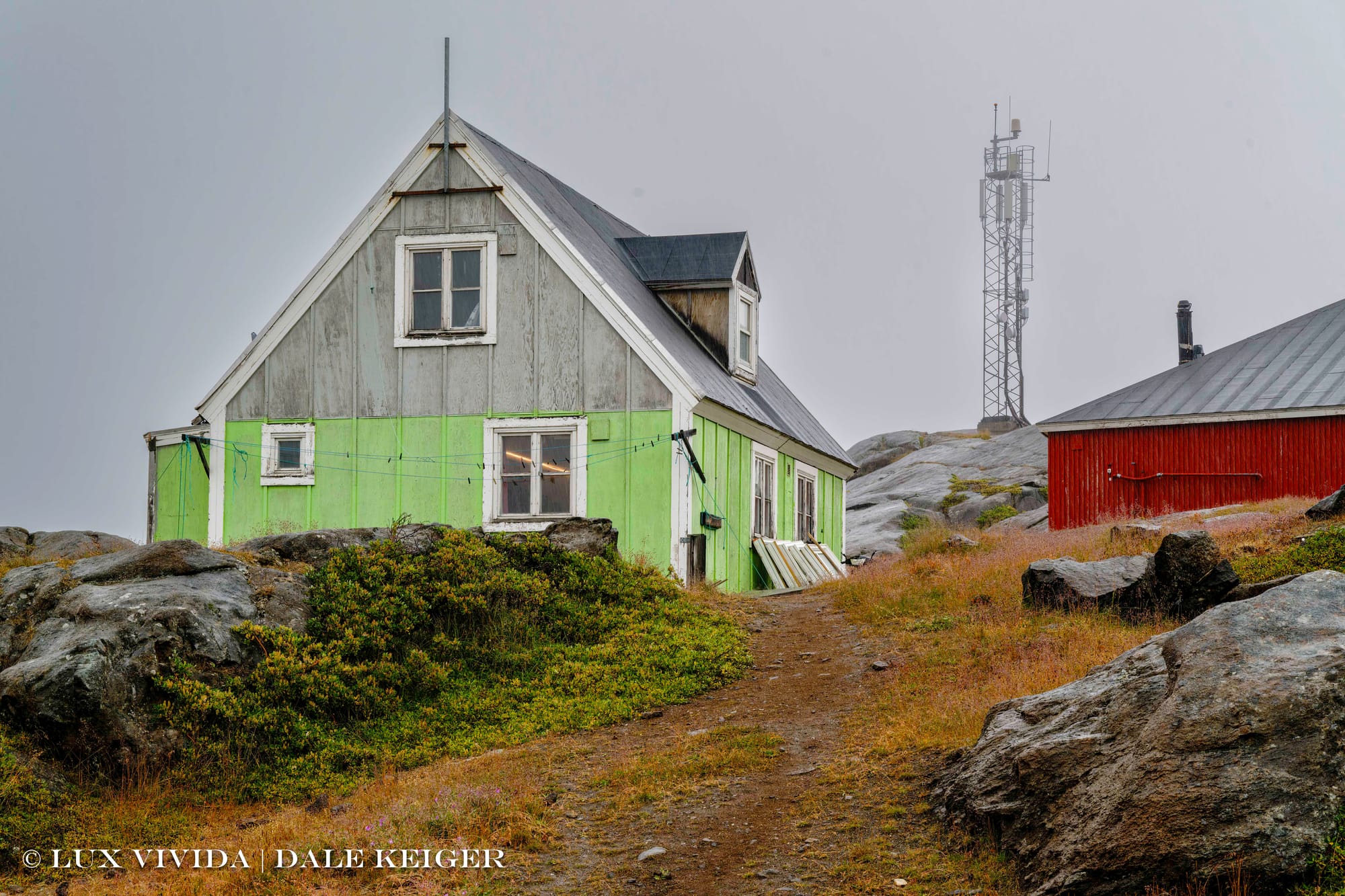 These stipulations no longer obtain, though clinics are still painted yellow. Now Greenlanders daub their houses in whatever Crayola color they like. There’s a popular general theory, at least on the internet, that fishing communities like Taliisaq, that front misty oceans, began painting their waterfront structures in vivid colors to help fishermen find them in the fog. I've experienced fog in places known for their colorful shorefront houses, like Greenland and Newfoundland, and I’m dubious. You can’t see anything in that soup, no matter the color, and I wonder when was the last time someone asked an actual fisherman about the theory.