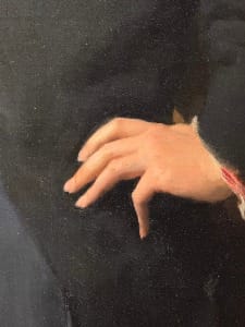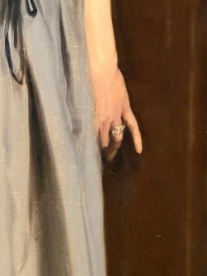 I viewed the picture last July at the Metropolitan Museum of Art in New York, as part of its superb “Sargent & Paris” exhibit. My painter father taught me to systematically and meticulously examine all aspects of a painting. Following his instructions with Dr. Pozzi at Home, I felt my gaze settle on the subject’s left hand.