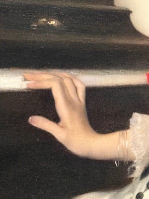 The Met’s description said she appeared to have just paused in her playing, but not if you look at the angle of the chair. Anyway, yes, the hands...