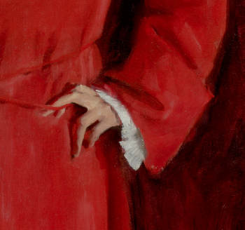 I have no idea what Sargent was thinking when he painted these hands, no idea if he intended some meaning or had just daubed some paint on the canvas, looked at the crook of a finger, and thought, Huh, I sort of like that. Declaring what an artist intended without consulting the artist is usually the road to silliness. And I don’t really care what John Singer Sargent may or may not have been saying through Dr. Pozzi’s right hand. I just like that in these commissioned portraits meant to flatter sleek, prosperous, high-status people, Singer has included bits of tension, hints that even these privileged lives were not without friction, and no matter how self-satisfied the subjects, perhaps they were not entirely at ease before the artist.