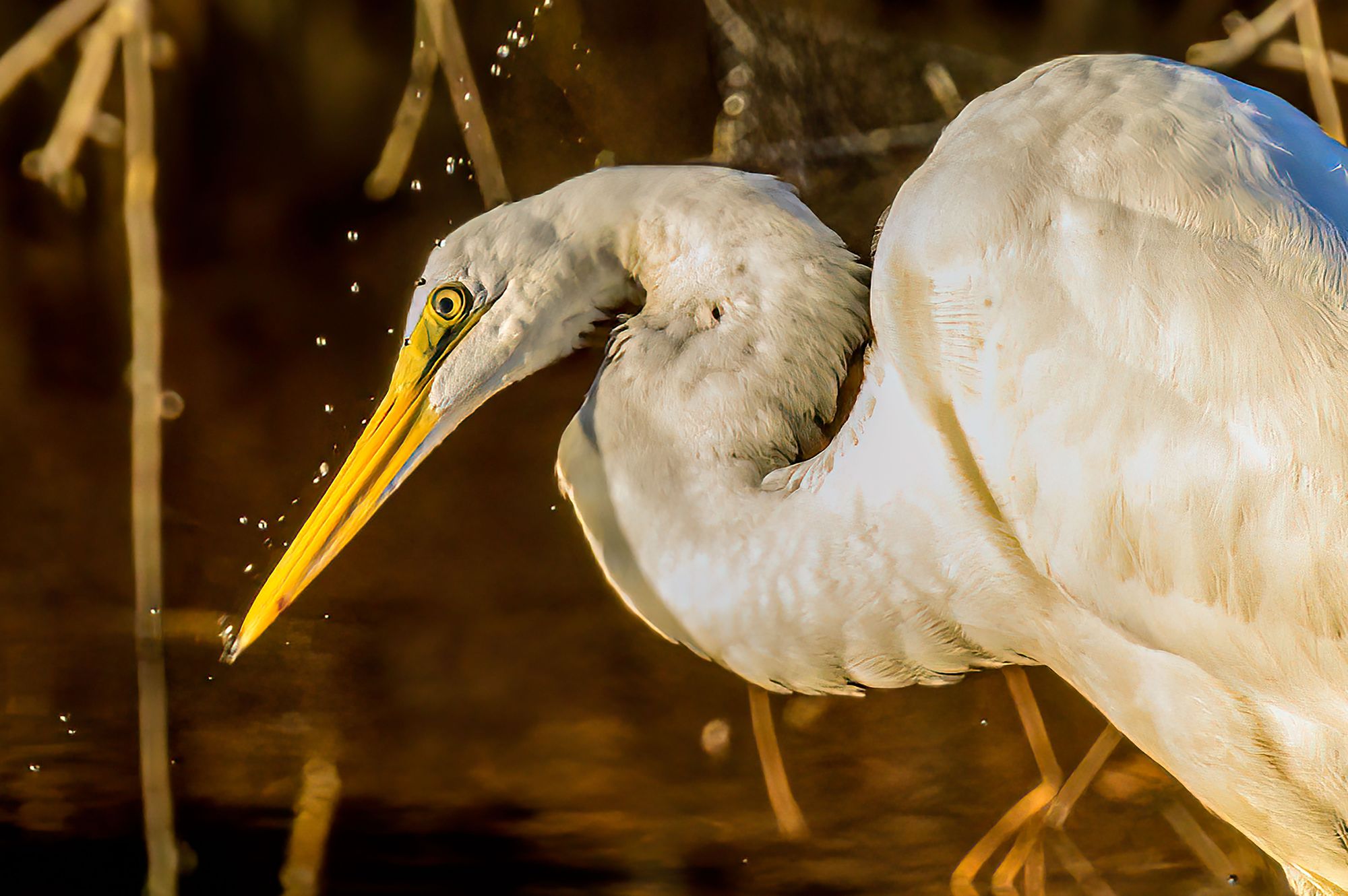 One collective noun for an egret assembly is a skewer of egrets, which seems apt. An egret can be still as stone then strike like a cobra. Sometimes you capture it. Mostly you don't.